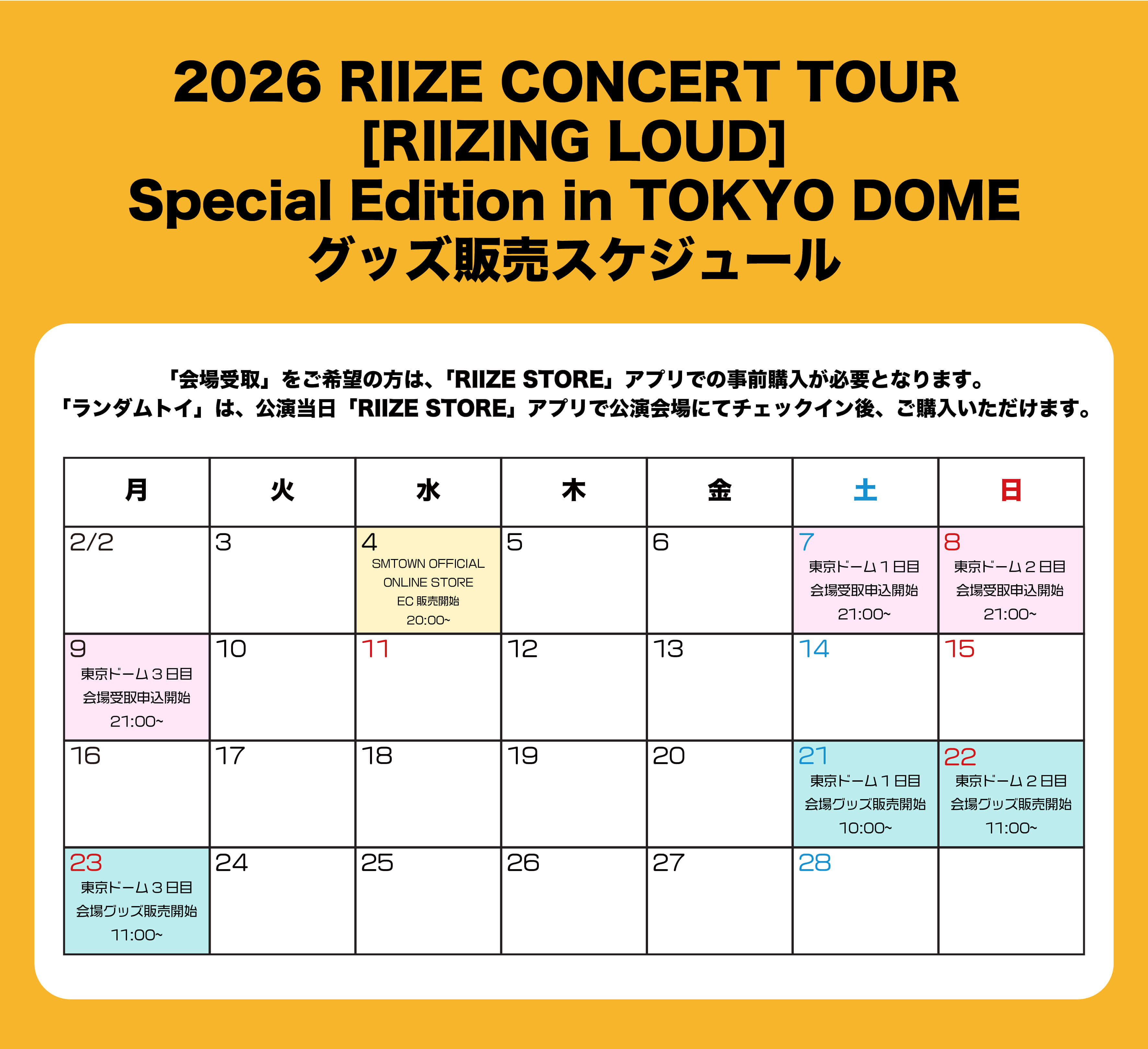 RIIZE初の東京ドーム公演『2026 RIIZE CONCERT TOUR [RIIZING LOUD] Special Edition in TOKYO DOME』のグッズ販売が決定いたしました!